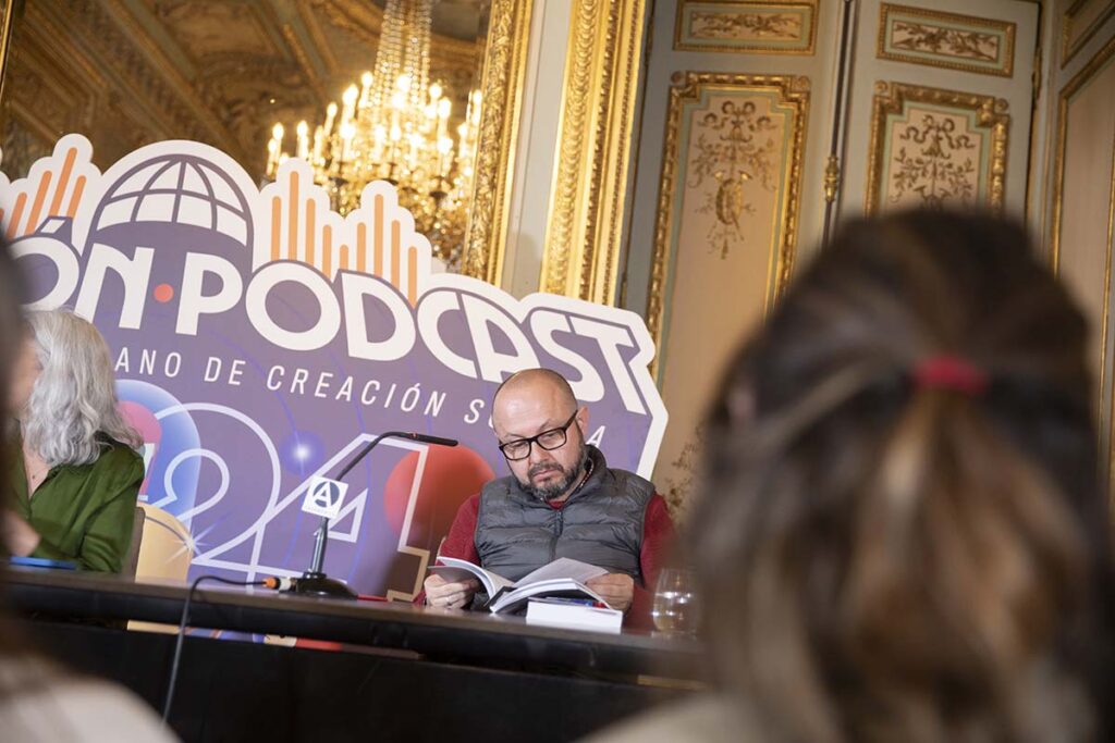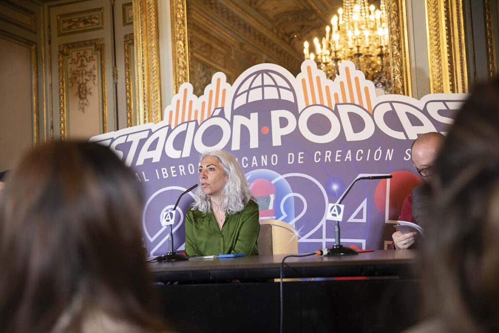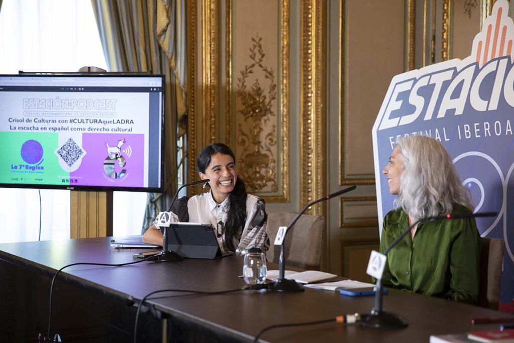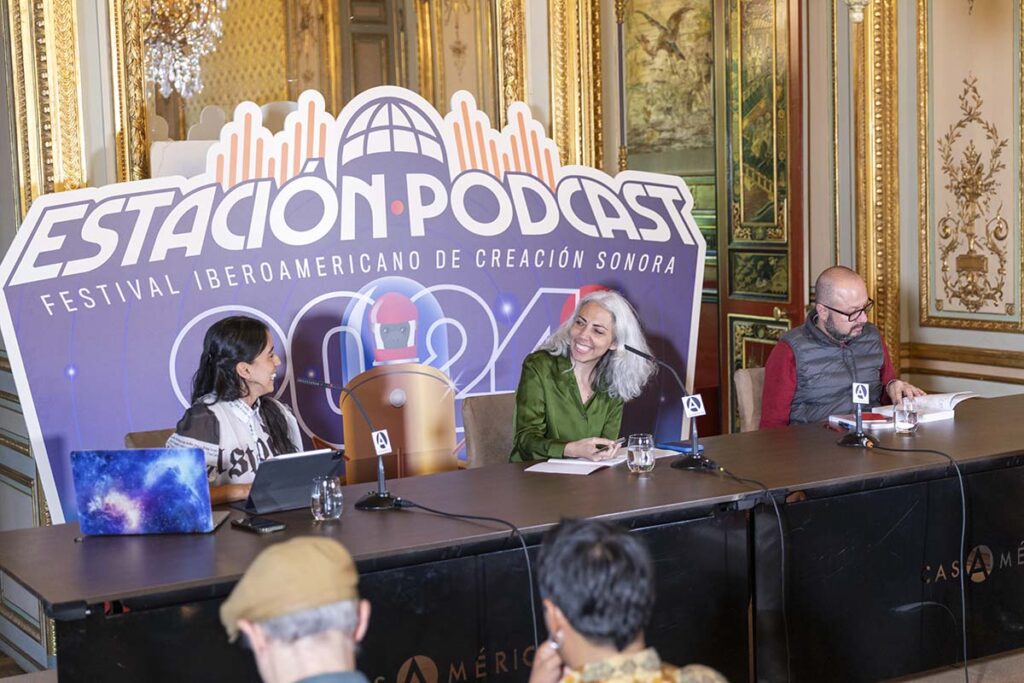 En la tercera edición del Festival Iberoamericano de Creación Sonora Estación Pódcast, hicimos parte de “El micrófono”, un espacio de programación profesional coordinado por el Ministerio de Exteriores, Cooperación y Unión Europea de España, y la curaduría del festival que tuvo lugar en Casa de América y en el Círculo de Bellas Artes de Madrid.